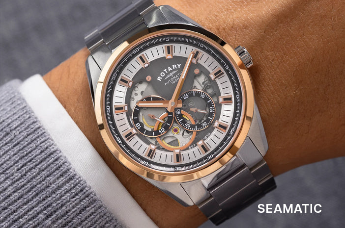 Rotary Men's Seamatic Automatic Skeleton Rose Gold PVD and Steel Watch | RGB10009/74 Rotary Men's Seamatic Automatic Skeleton Rose Gold PVD and Steel Watch | RGB10009/74